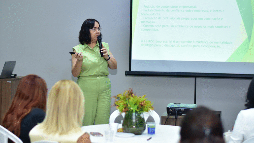 A solenidade teve como destaque a participação da Dra. Mirella Alves, Diretora de Mediação e Arbitragem da ACII, Vice-presidente do Conselho da Mulher Empresária (CME) e coordenadora do CEJUSC Empresarial da ACII. Em sua fala, ela apresentou a proposta do centro, dados do Judiciário e ressaltou como a nova estrutura contribuirá para reduzir etapas processuais e trazer mais celeridade às resoluções de conflitos.