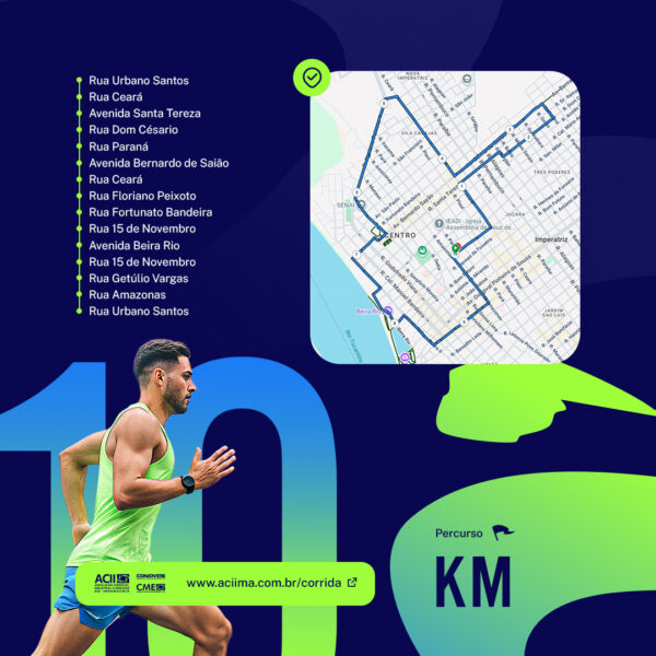 A Associação Comercial, Industrial e Serviços de Imperatriz promove a 5ª Corrida da ACII, evento que comemora os 66 anos da instituição. A iniciativa tem como objetivo incentivar a prática esportiva, promover saúde e bem-estar, além de fortalecer o vínculo entre a instituição e a comunidade.