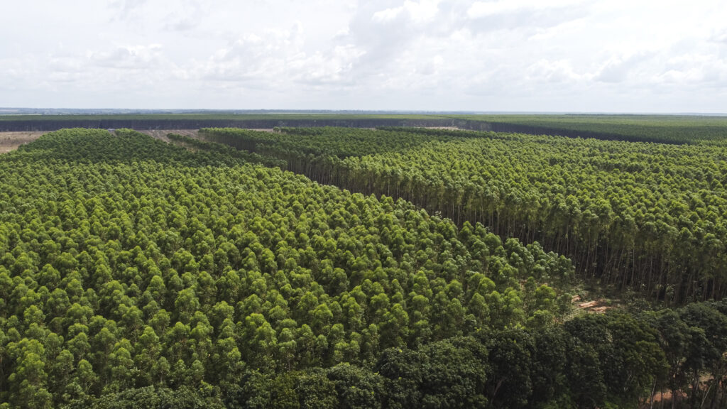 O plantio de eucalipto ocorre em mosaico, no qual áreas de conservação são intercaladas com as de árvores cultivadas, promovendo a conectividade da paisagem, o que contribui para a preservação da biodiversidade, regulação hídrica e remoção de carbono. A atividade está adequada à Política de Desmatamento Zero da Suzano, assegurando que a expansão das áreas de plantio no Brasil ocorra apenas em áreas antropizadas, especialmente pastagens degradadas, propondo soluções baseadas na natureza de forma estratégica, visando atender a demanda produtiva por meios mais sustentáveis.
